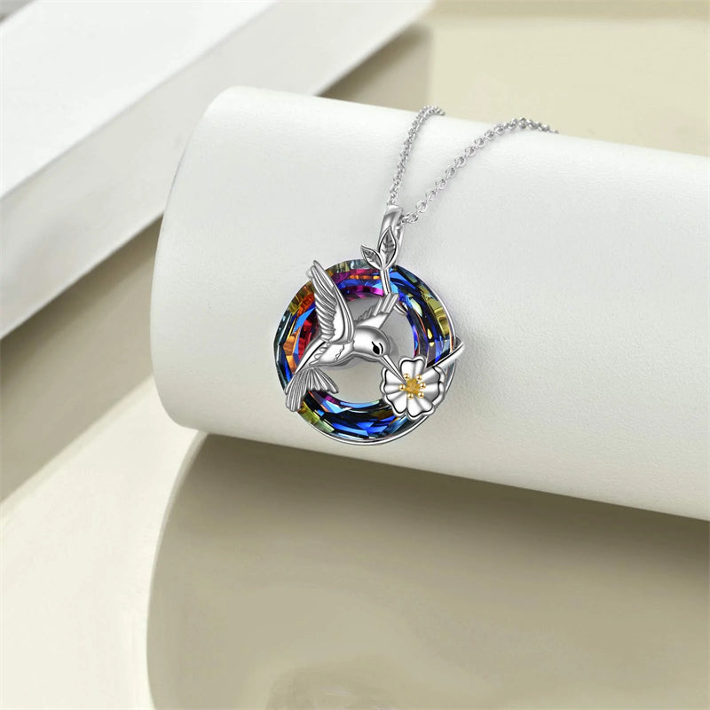 Hummingbird Urn Necklace for Ashes Sterling Silver with Crystal Cremation Jewelry w/Funnel Filler Keepsake Memory Jewelry for Women Girls