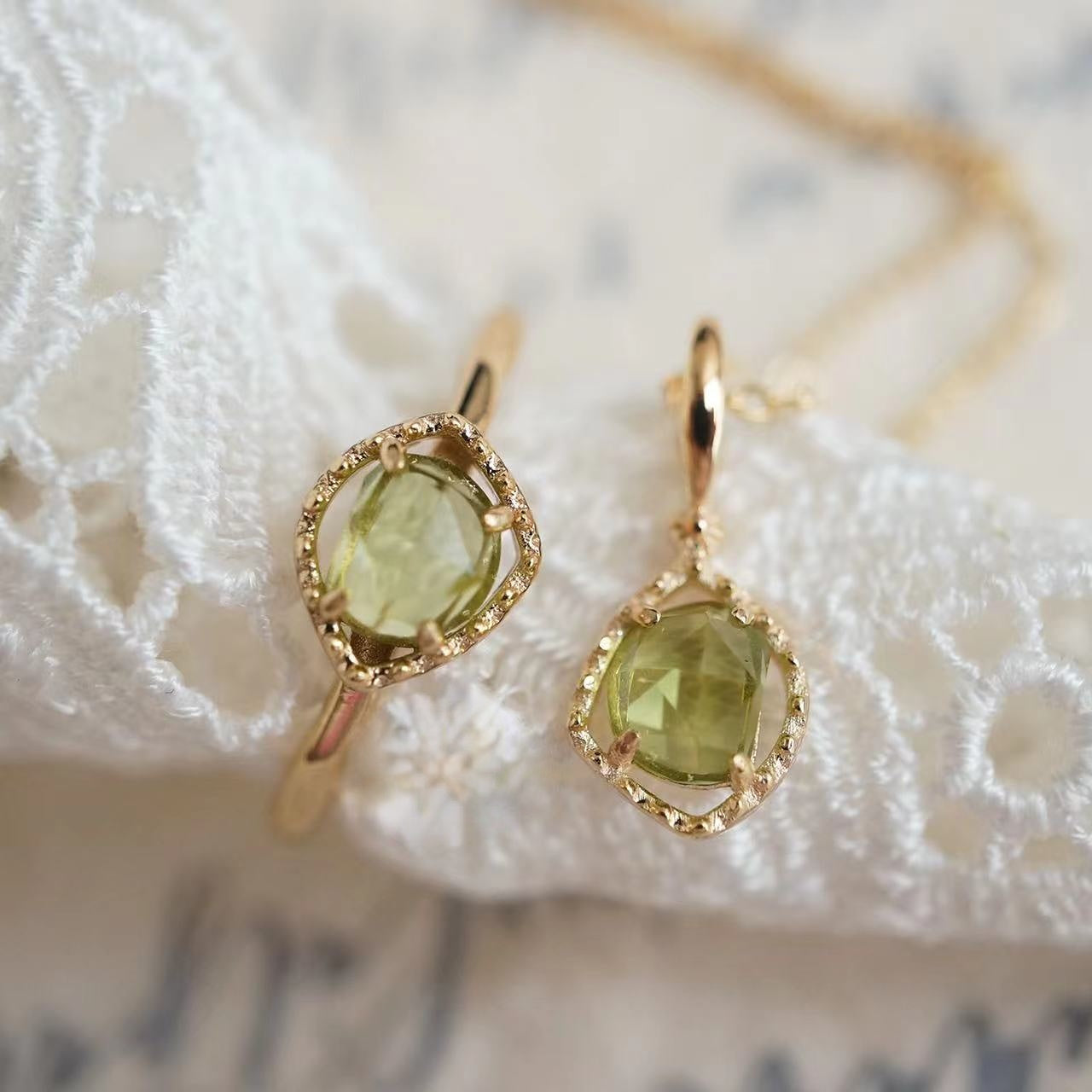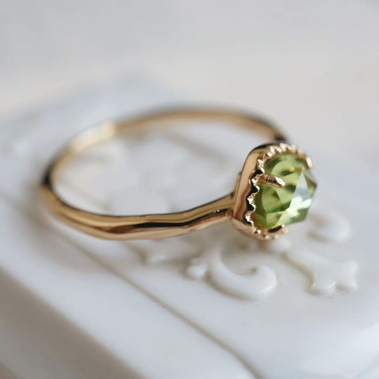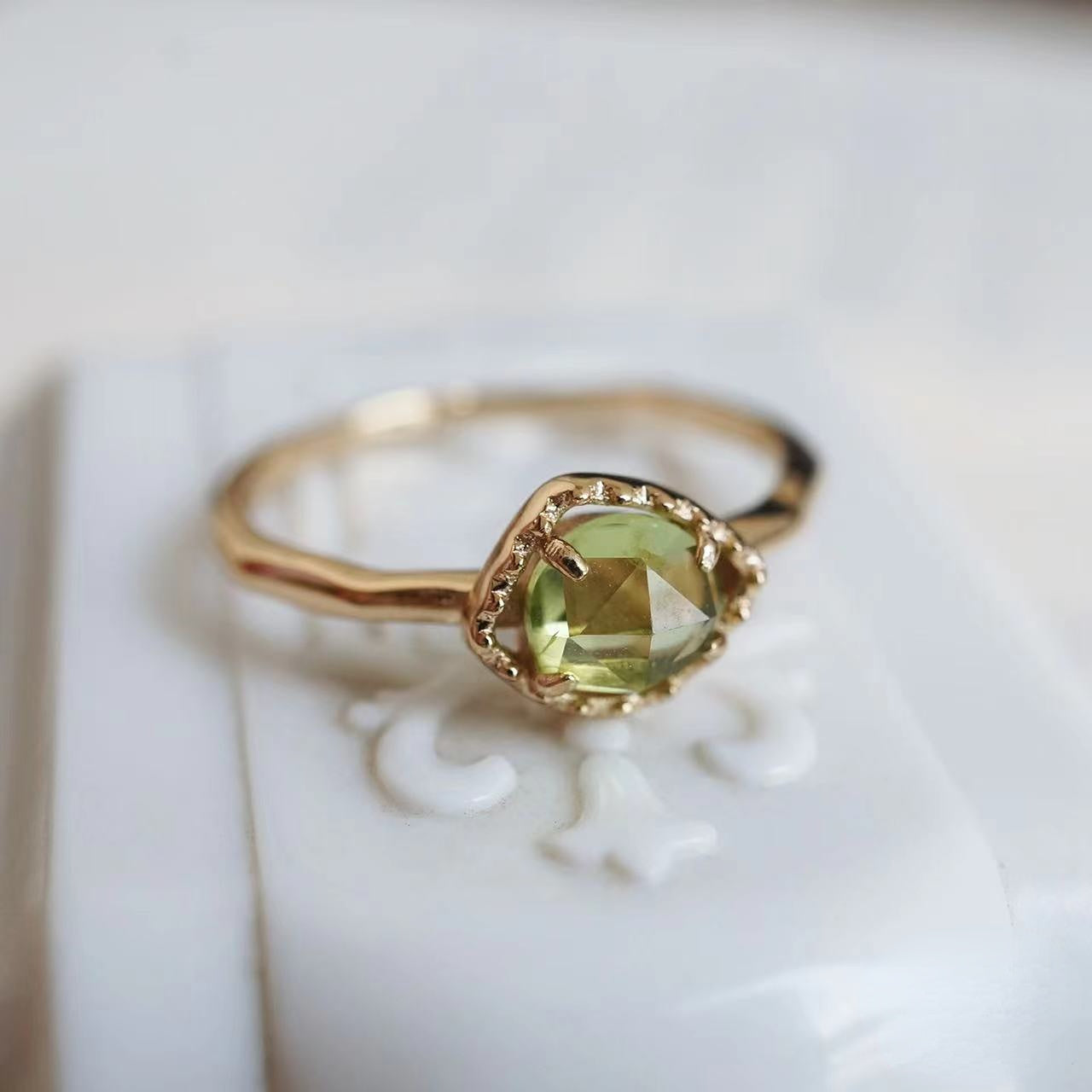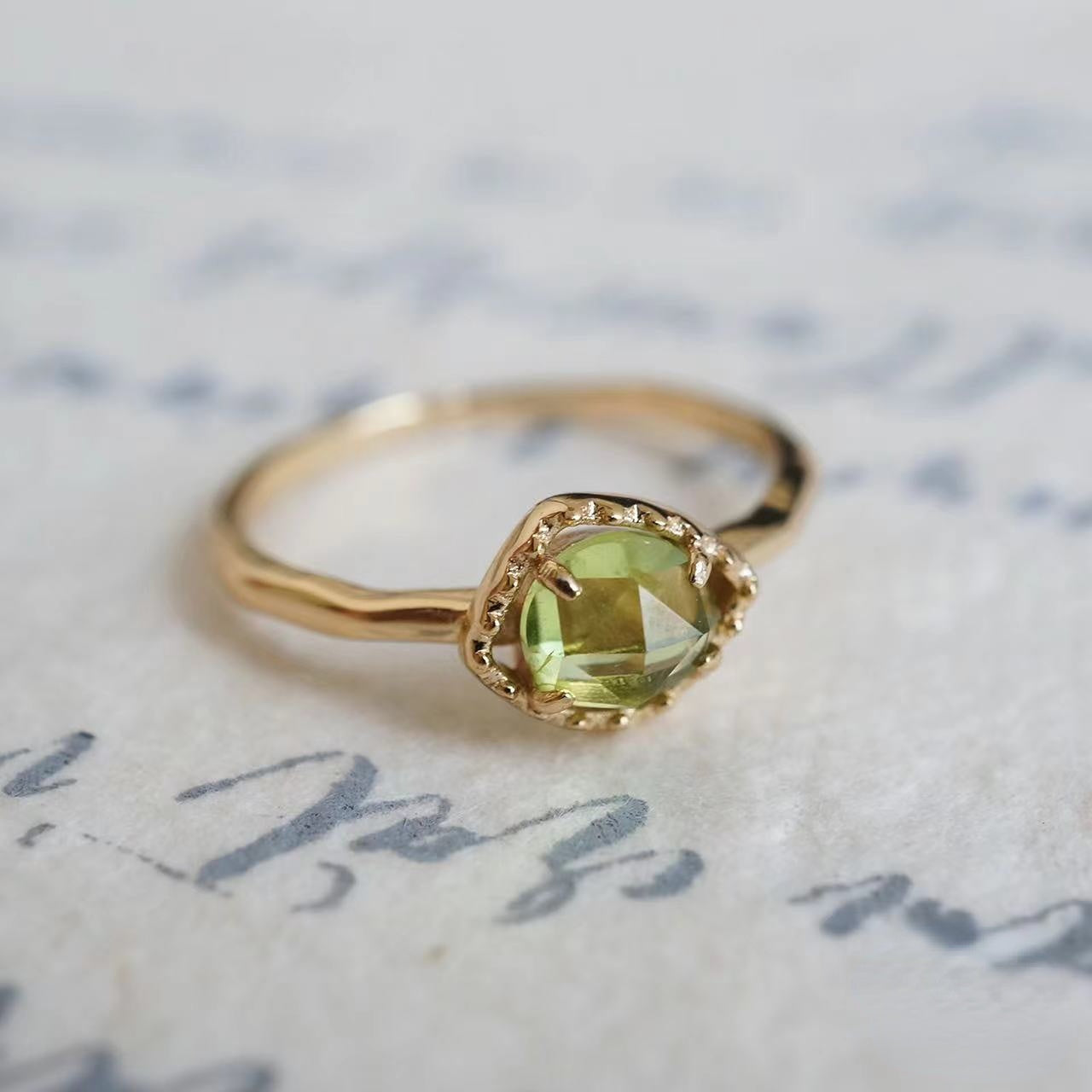 Natural Peridot Irregular Bubble Ring-Anniversary Birthday Gift For Her
