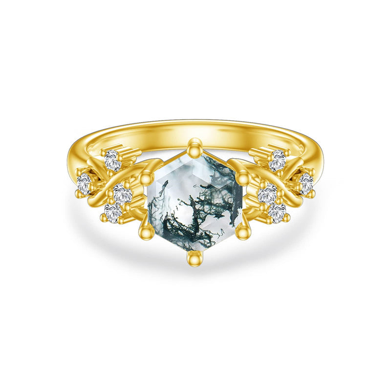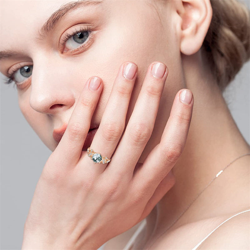 ❤Moss Agate Ring❤ The moss agate engagement ring is designed for women. The delicate detailing gives the natural agate ring an elegant look. The natural moss agate ring can heal your heart very well. It is believed that moss agate is a source of abundance, happiness and longevity.