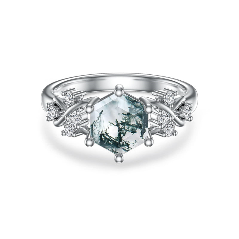 ❤Material❤ Stone : Natural Moss Agate. Stone Size : 1 Ct, 6*6 mm Hexagon Shaped. The moss agate ring made of 925 sterling silver, no nickel and lead-free, no skin allergies, harmless to health. Package: Sterling silver moss agate ring comes with a delicate gift box.